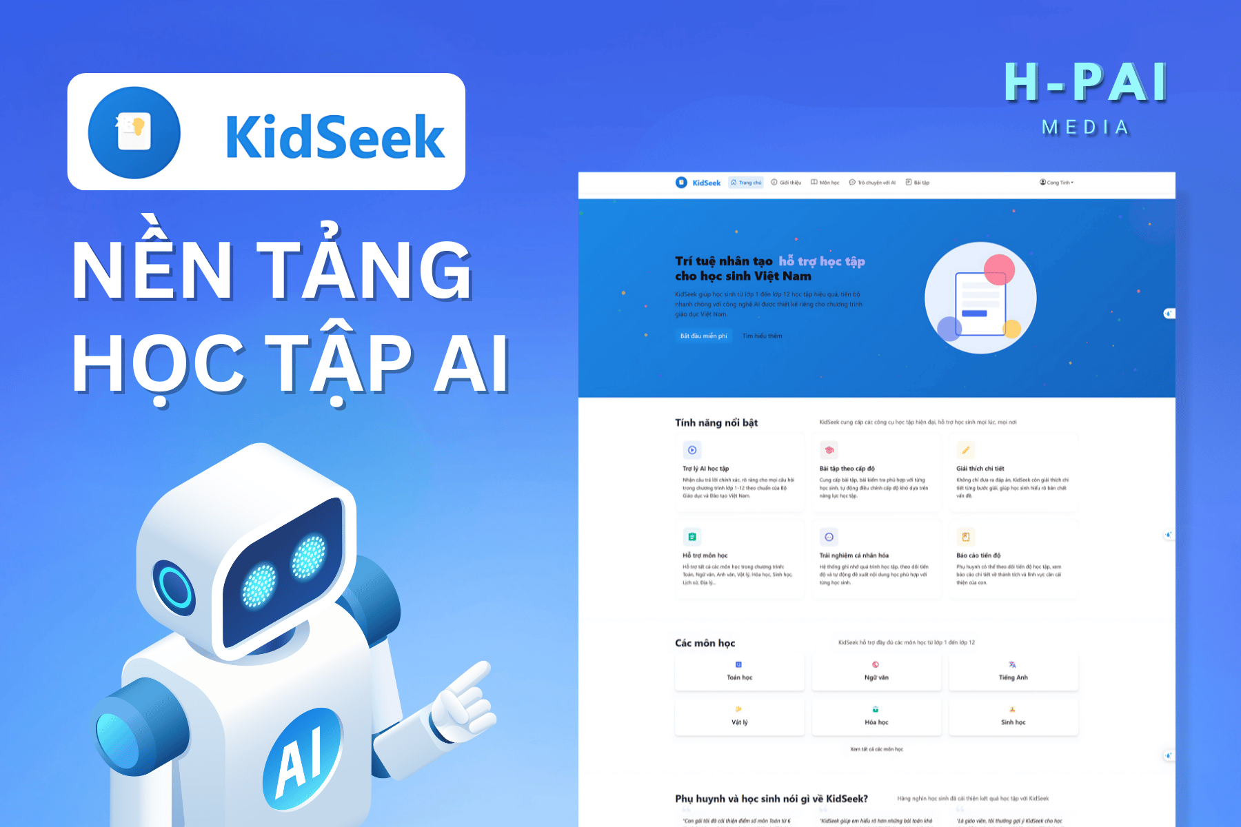 Là nền tảng học tập thông minh ứng dụng Trí tuệ Nhân Tạo (AI), được thiết kế đặc biệt dành cho học sinh Việt Nam từ lớp 1 đến lớp 12. KidSeek giúp học sinh hỏi bài, luyện tập, làm bài tập, theo dõi tiến bộ, và tự đề xuất nội dung học phù hợp với từng người.